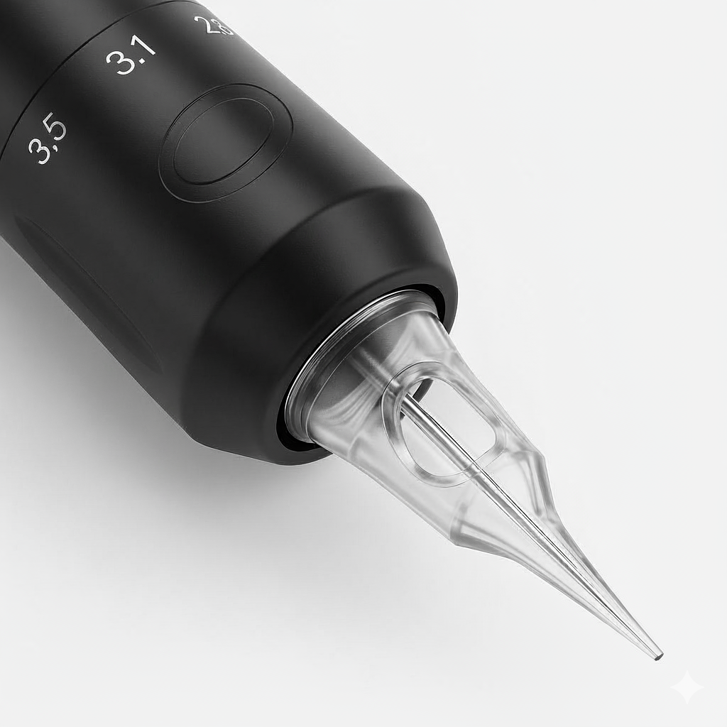 V jeho jádru se nachází vysoce kvalitní motor Maxon vyrobený ve Švýcarsku – komponent, který se v PMU strojcích objevuje jen zřídka. Díky pokročilému magnetickému systému motor poskytuje výjimečný točivý moment, což zajišťuje silný a stabilní výkon i při nižších otáčkách. Tato jedinečná vlastnost umožňuje jemnější práci na pokožce, minimalizuje trauma a zároveň zaručuje hladkou a rovnoměrnou implantaci pigmentu.